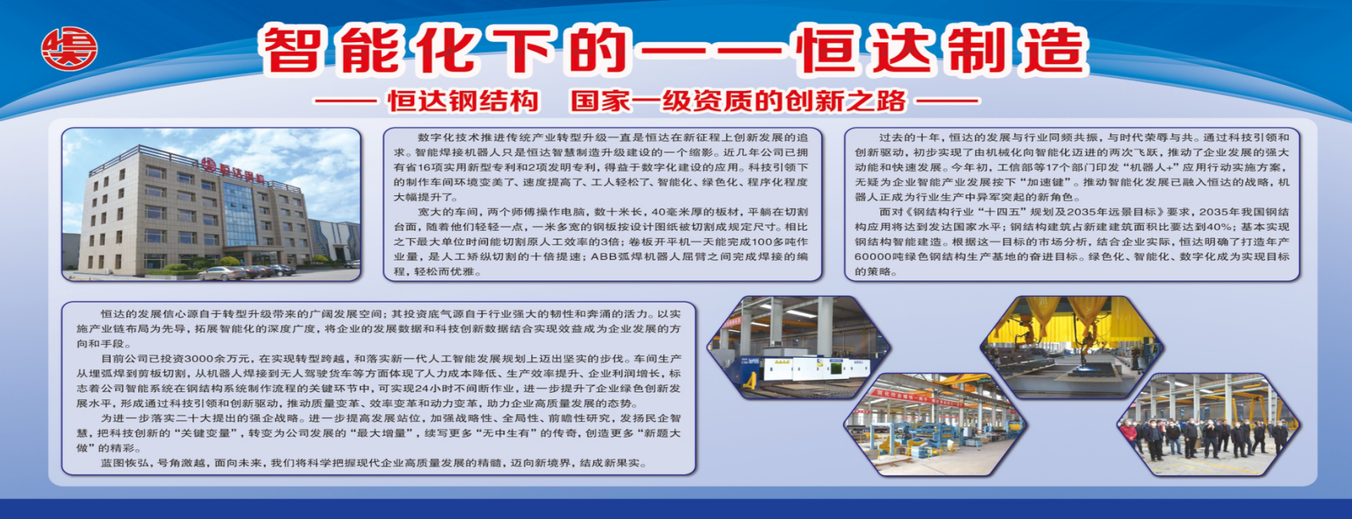 山西恒達(dá)鋼結(jié)構(gòu)工程有限公司始建于1998年,位于國(guó)家歷史文化名城、晉商故里——山西祁縣,緊鄰208國(guó)道,坐落于省級(jí)經(jīng)濟(jì)開(kāi)發(fā)區(qū),毗鄰喬家大院景區(qū),地理環(huán)境優(yōu)越,交通十分便利。現(xiàn)有廠(chǎng)區(qū)占地面積200余畝,建筑面積60000平方米。 我公司是一家從事研發(fā)、銷(xiāo)售、制造和施工于一體的大型鋼結(jié)構(gòu)工程企業(yè),同時(shí)也是涂鍍鋼品及配套建筑圍護(hù)材料系統(tǒng)的專(zhuān)業(yè)生產(chǎn)廠(chǎng)商。多年來(lái),逐漸確立了以商務(wù)寫(xiě)字樓、賓館、高層住宅等為主的高層鋼結(jié)構(gòu)建筑體系,以大型煤倉(cāng)、高鐵車(chē)站、體育場(chǎng)館等公共建筑為主的空間大跨度鋼結(jié)構(gòu)建筑體系,以工業(yè)廠(chǎng)房、低溫物流庫(kù)、多層鋼結(jié)構(gòu)建筑等為主的輕鋼結(jié)構(gòu)建筑體系。 我公司現(xiàn)擁有數(shù)條輕鋼結(jié)構(gòu)加工生產(chǎn)線(xiàn)、重型鋼結(jié)構(gòu)加工生產(chǎn)線(xiàn)、箱型梁柱加工生產(chǎn)線(xiàn),同時(shí)配套有全自動(dòng)巖棉保溫復(fù)合板生產(chǎn)線(xiàn)、高鐵聲屏障、抑風(fēng)墻生產(chǎn)線(xiàn),數(shù)控C型鋼生產(chǎn)線(xiàn)及各種規(guī)格的壓型板生產(chǎn)線(xiàn)三十余條,擁有年鋼結(jié)構(gòu)加工8萬(wàn)噸、鋼結(jié)構(gòu)圍護(hù)面積120萬(wàn)平方米的生產(chǎn)能力, [ 查看詳情 ]